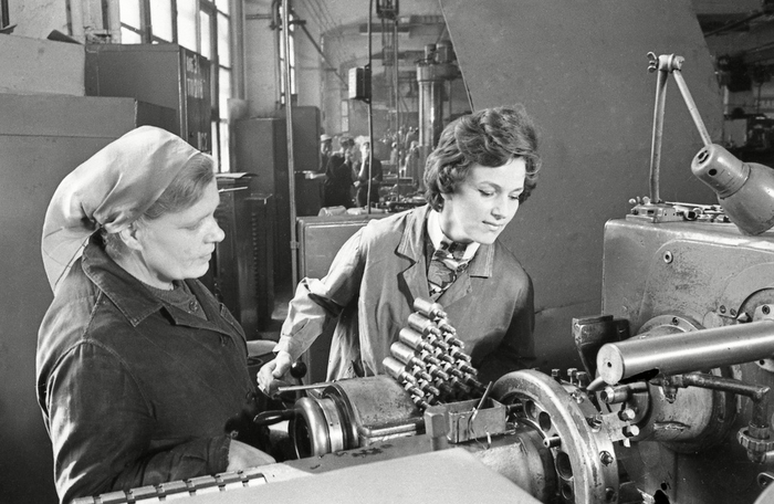 Народная артистка СССР Юлия Борисова на заводе «Динамо», где она была членом бригады коммунистического труда. 1960-1963 гг.
