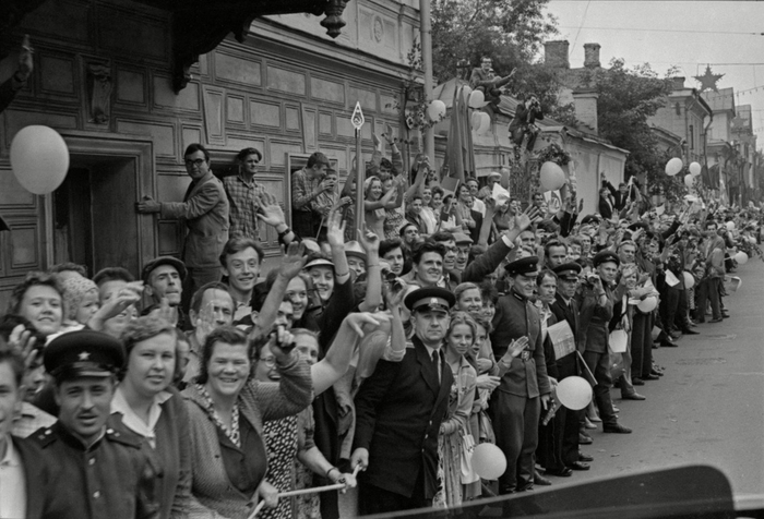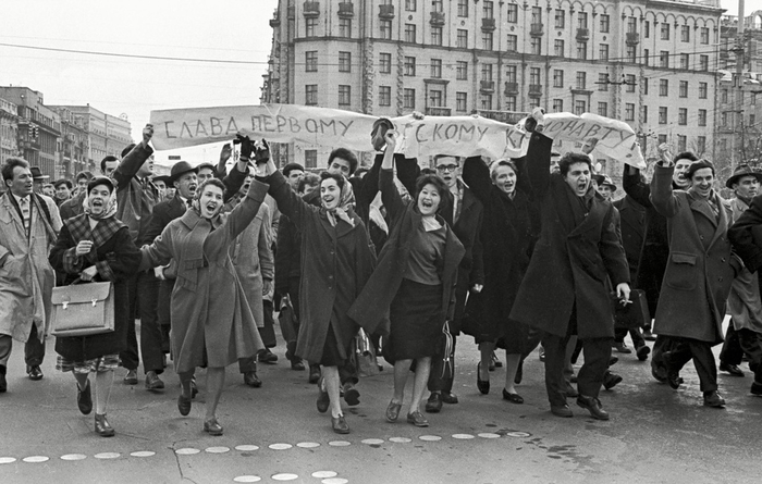 Стихийная демонстрация в честь полета Юрия Гагарина в космос. 12 апреля 1961 г.