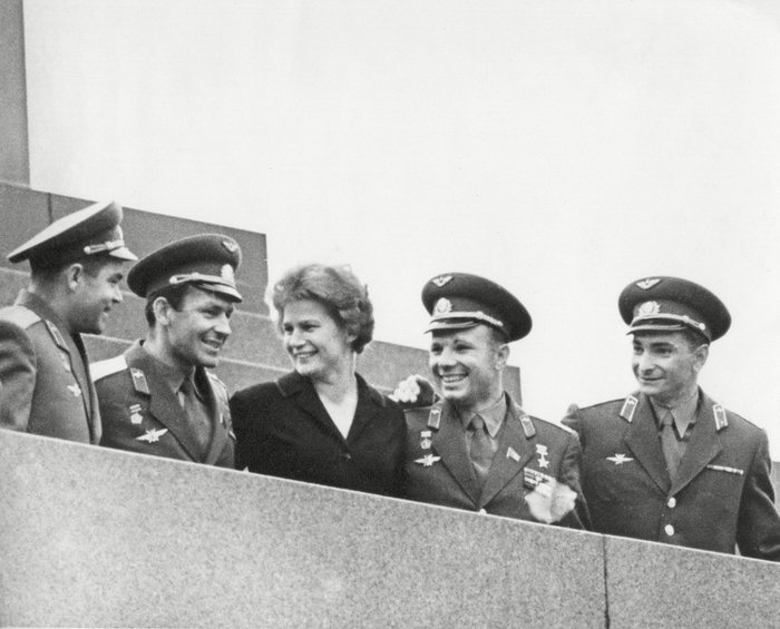 Слева направо: Андриян Николаев, Герман Титов, Валентина Терешкова, Юрий Гагарин и Валерий Быковский.