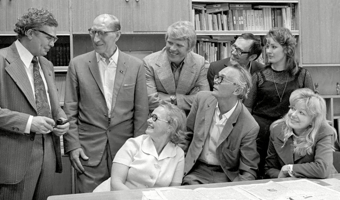 Встреча в редакции газеты «Известия» с кинорежиссером Леонидом Гайдаем и актерами Сергеем Филипповым, Михаилом Кокшеновым, Ниной Гребешковой, Людмилой Шагаловой.