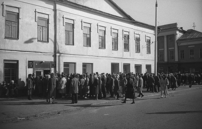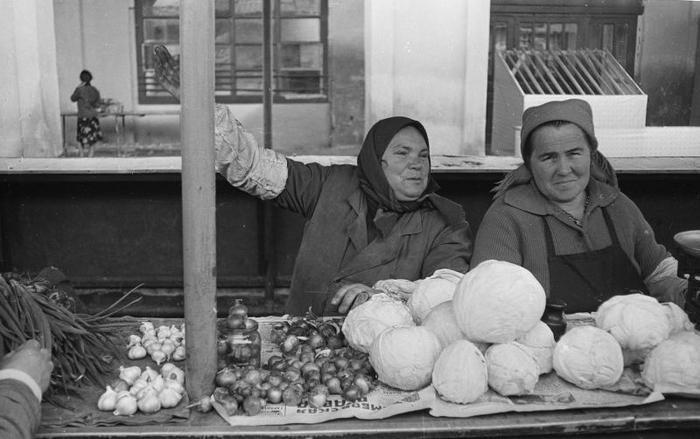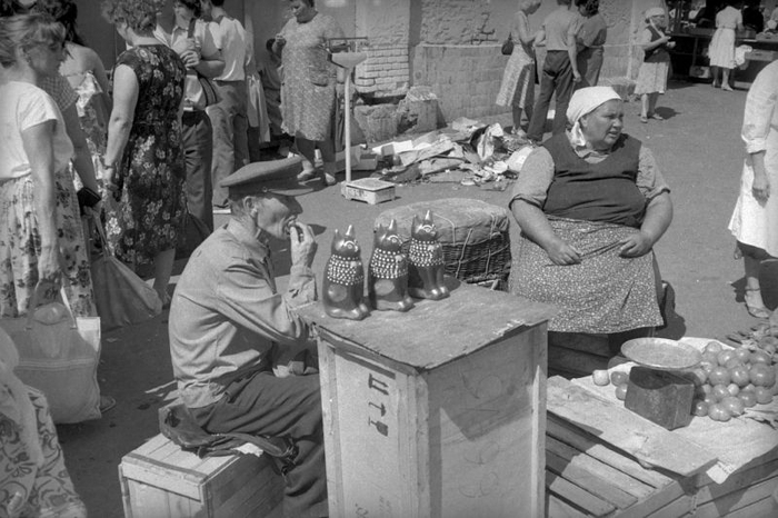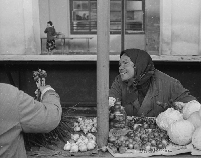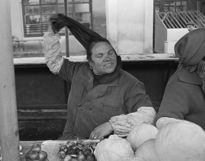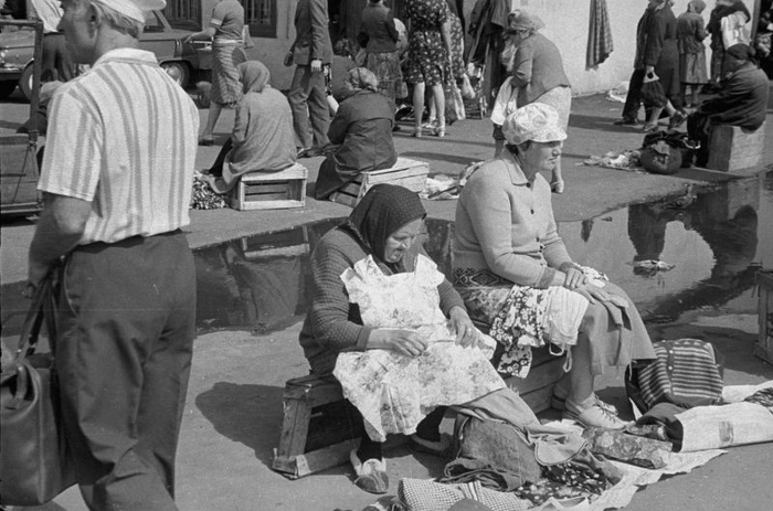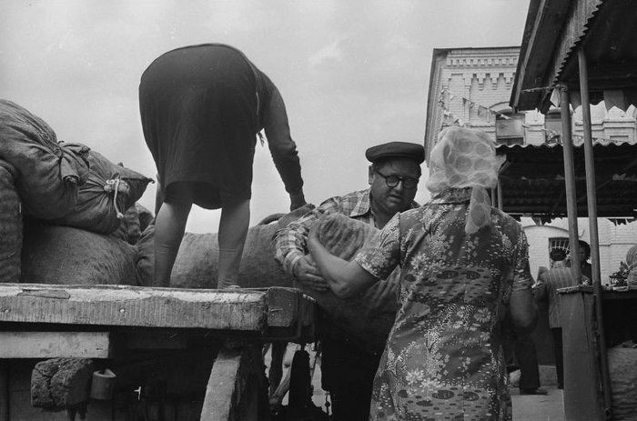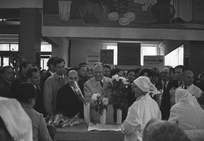 Госсекретарь США Уильям Пирс Роджерс общается с москвичами на рынке. Май 1972 г.