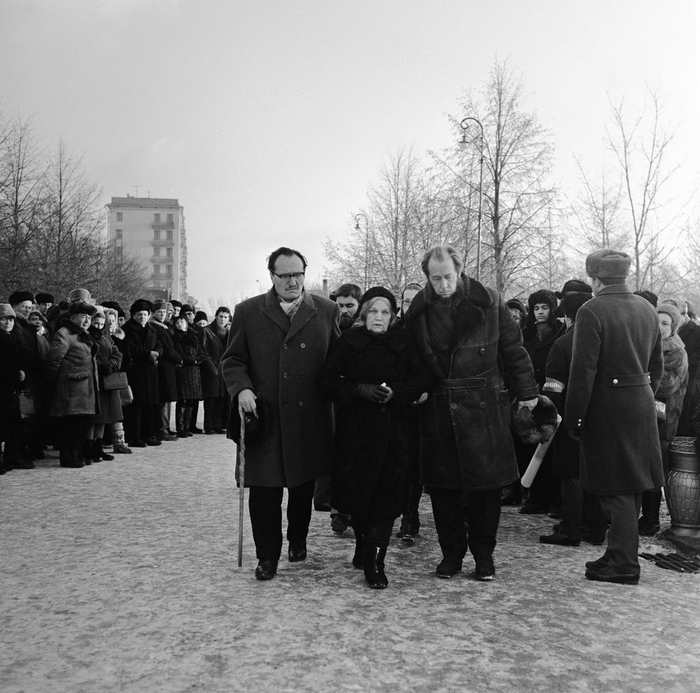 Ваганьковское кладбище. У гроба Марина Влади и Нина Максимовна Высоцкая. Слева на фотографии Валерий Янклович, друг Высоцкого.
