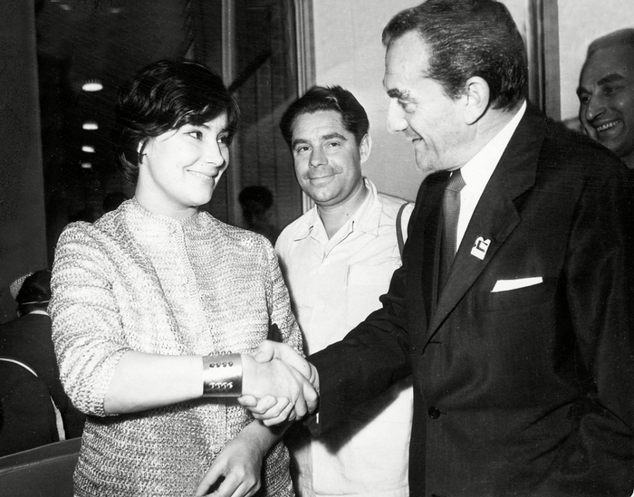 Советский и российский композитор Александра Пахмутова на приеме в честь 8 Марта. 1969 г.
