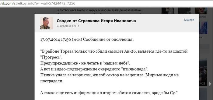 Вспоминаем - Боинг МН-17 сбит 17:20.