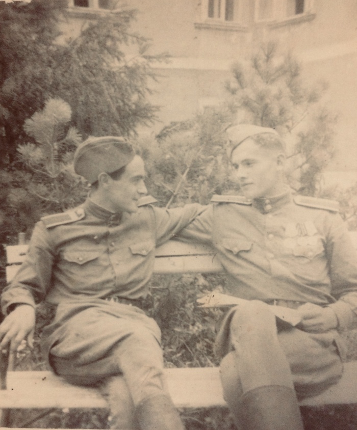 А это отец с ещё одним фронтовым другом - Виктором Фатовским. Может, это он - крайний справа?