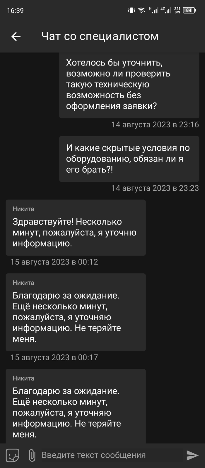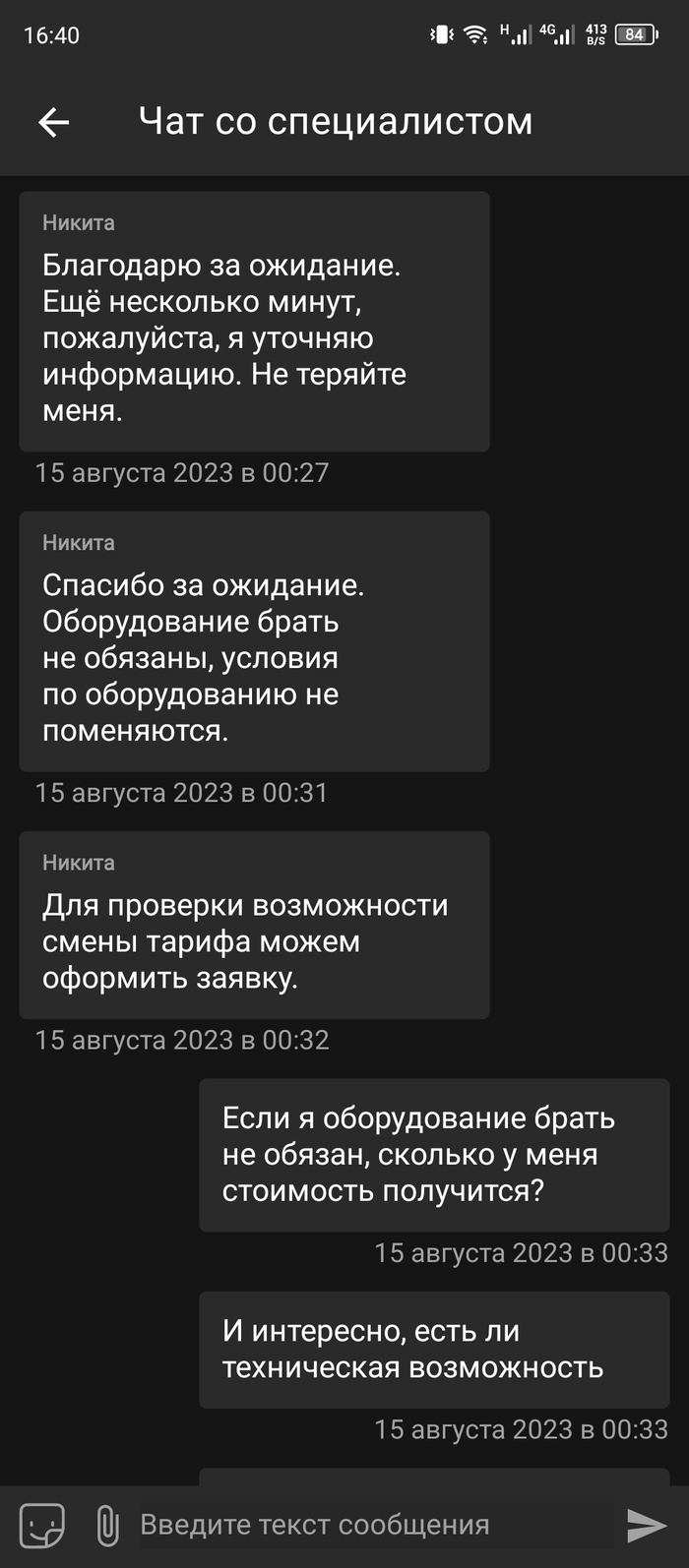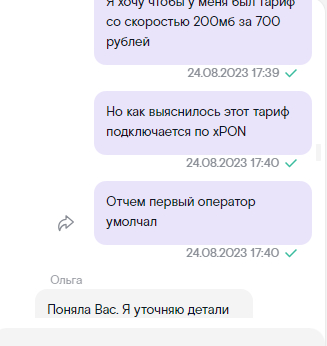 Я решил уже не идти в чат, а позвонить на официальную горячую линию. В течении часа, если не больше, я успел пообщаться с 5 разными сотрудниками. В ходе общения выяснилось, что этот тариф предлагается если технология подключения xPON(у меня если не ошибаюсь fttx или fttb). Тогда я попросил проверить, возможно ли мне протянуть новый кабель и проверить тех. возможность подключения, операторы федеральной линии все как один ответили, что по моему адресу это возможно и переключают меня на регионального для оформления заявки, региональный оператор смотрит мой адрес и говорит что? Правильно в доме только оптика и подключение xPON мне недоступно, думаю как так, тариф предлагается, тех. возможность есть, а подключить нельзя, на что я потом оставляю несколько претензий. Обман в чистом виде что в рекламе, что и операторов, особенно первого, потому что он не уведомил меня, что подключение производится по линии xPON.