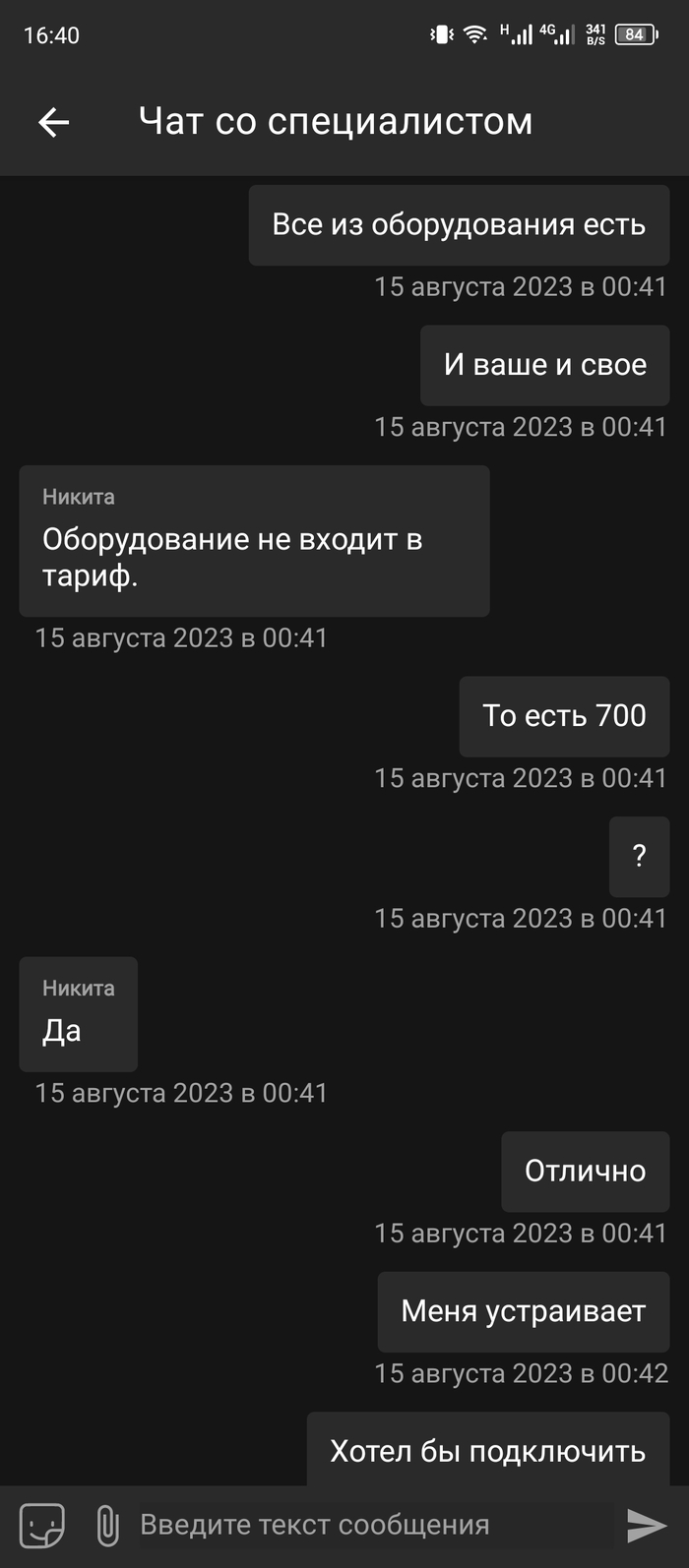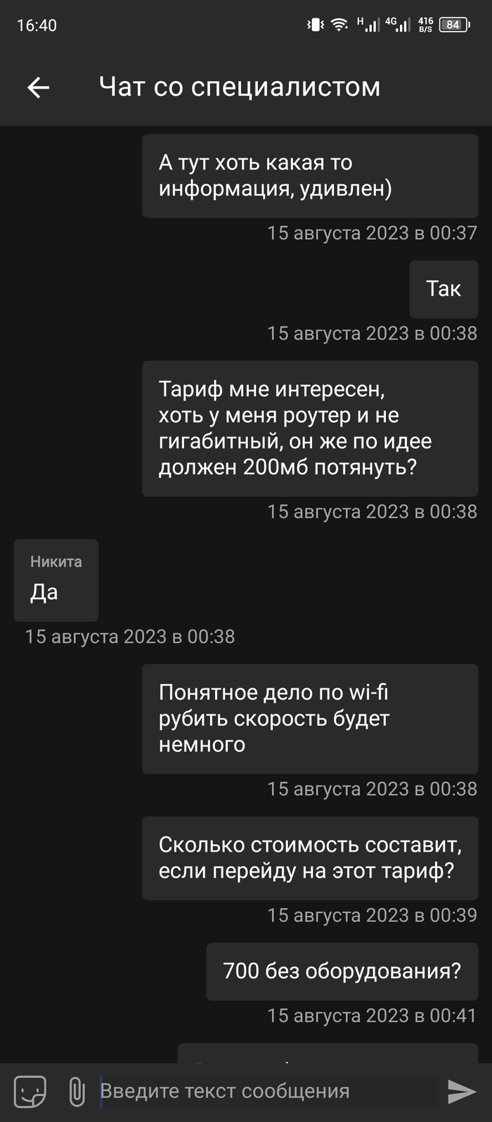 Согласитесь, не плохо так, да? Интернет 200мб да ещё и за 700 деревянных. И тут я пошел в чат Ростелекома @RostelecomRUS, @Rostelecom, с распросами сотрудника, дабы узнать все подводные камни: