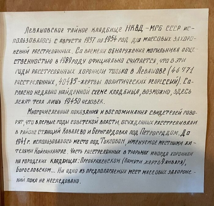 Как бы там ни было "Левашовская пустошь" остается местом памяти того странного, ужасного и бесчеловечного отрезка в нашей истории.