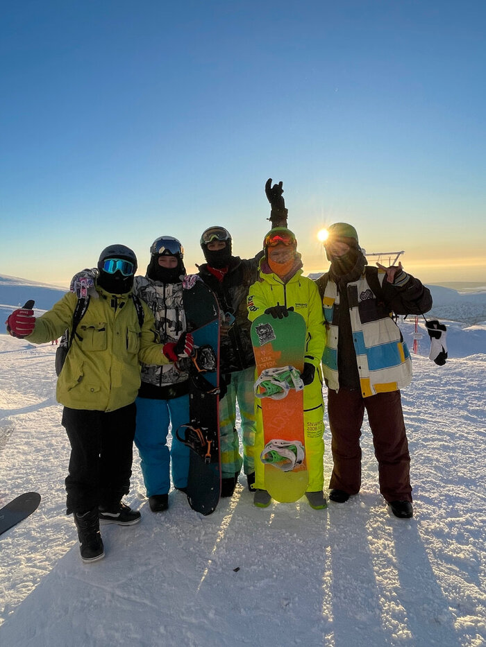 В третий день погода была песня. Северное солнце и небольшой ветер при -5. Наконец можно было увидеть трассу по которой мы вчера рассекали и обкатать не только северный, но и южный склон. Обкатали все, пока не стали отказывать ноги от усталости!