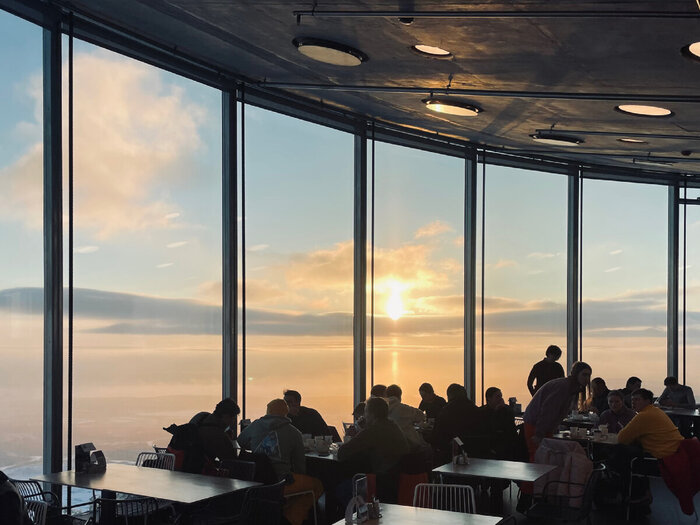 Платишь 1200 рублей и ешь сколько хочешь. Фишка заведения - это локация прямо на горнолыжном курорте с панорамными офигенными видами.