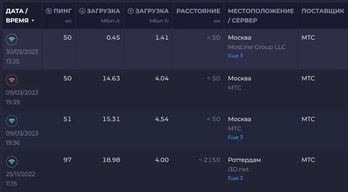 — по результатам тестирования интернет-скорости сервисом: https://www.speedtest.net