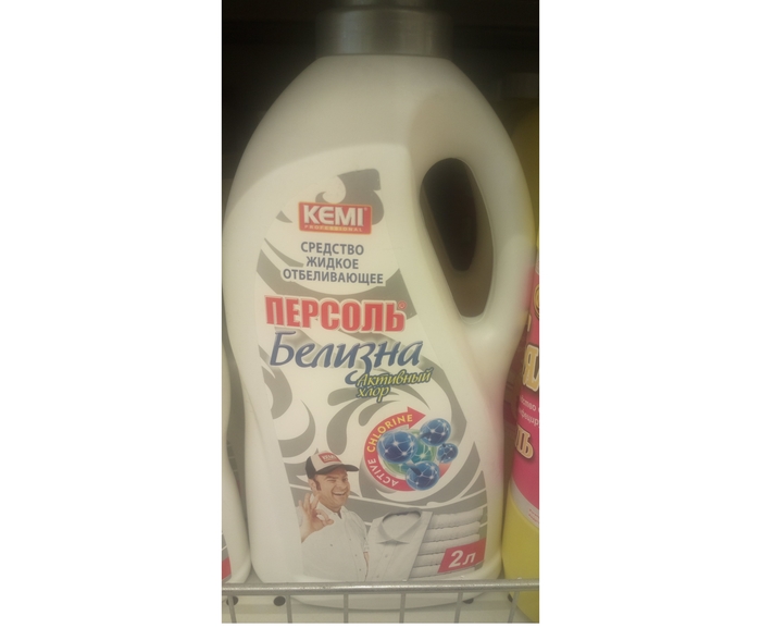 Итак, первым делом я направился в отдел бытовой химии, стиральных порошков и моющих средств. Первое что попалось на глаза: