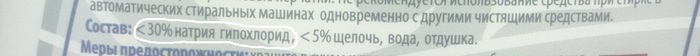 Следующая Белизна уже содержит концентрацию гипохлорита посерьезнее.