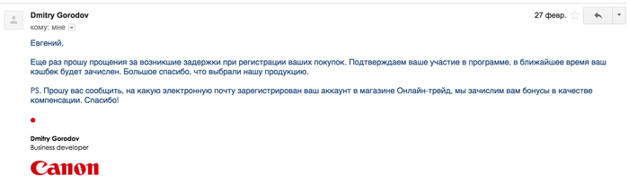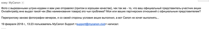 Завершение истории с чудо-акцией от Canon