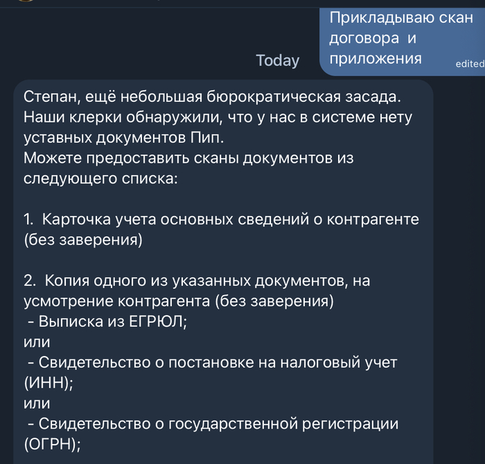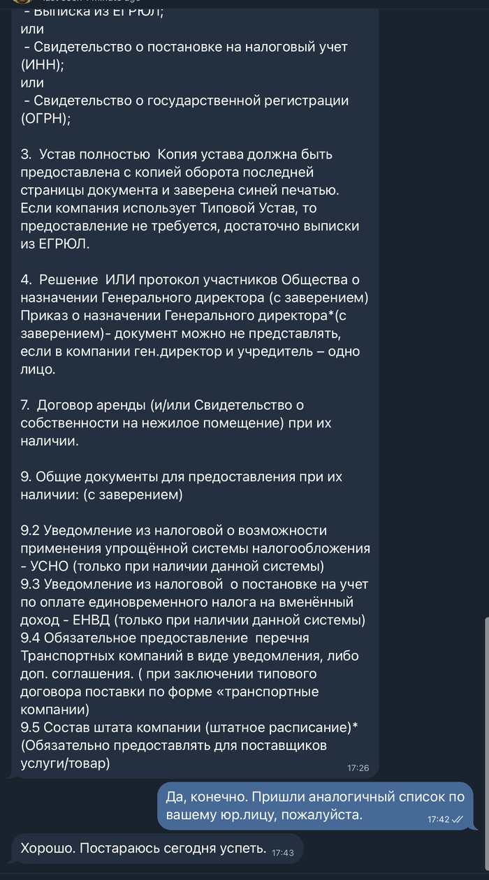 Почему-то, когда контрагент просит прислать пачку документов и просишь его прислать такой же набор, то список резко сокращается