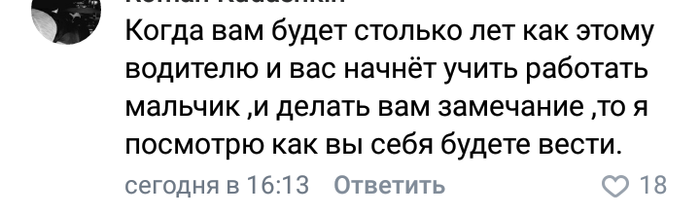 - И запомни: ещё раз замечание мне сделаешь, ты чтоб на этом автобусе больше не ездил.