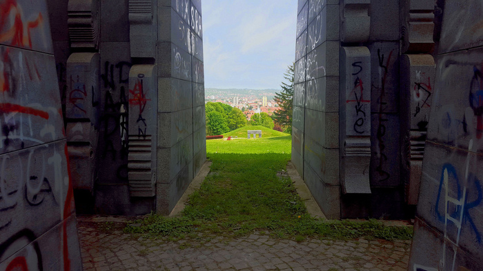 Выглядит он совершенно инопланетно, если бы не знал, что это такое, подумал бы, что кадр из фантастического фильма скорее. Он был построен в 1976-1980 годах по проекту архитектора Богдана Богдановича в память о погибших во Второй Мировой войне.