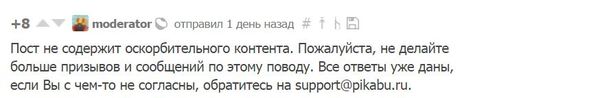 А как же тогда множественные призывы модераторов от разных людей с просьбой удалить провокационный пост?