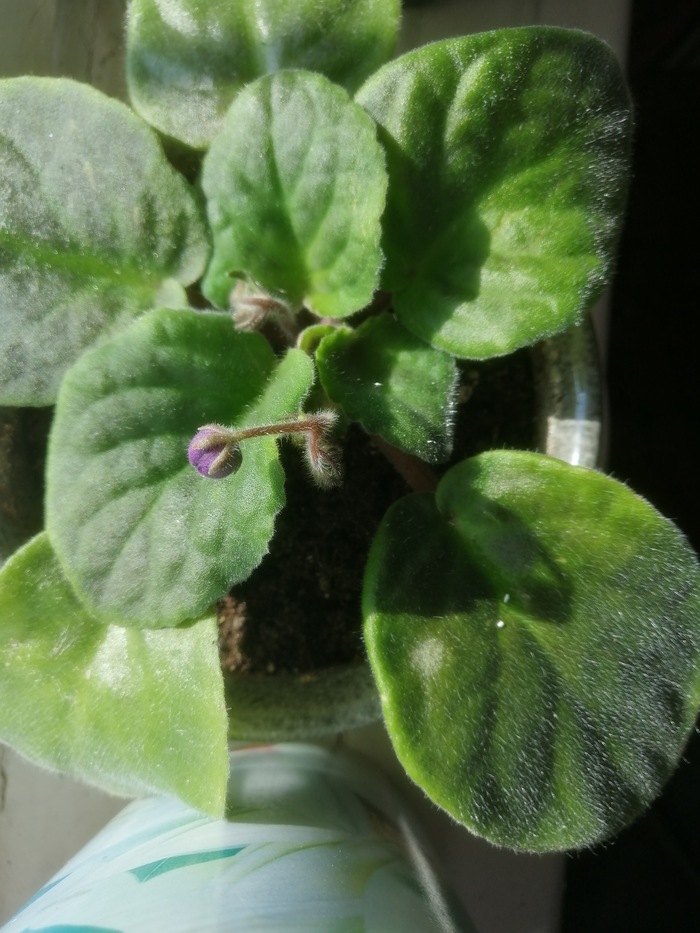 Недавно я рассказывала про фиалку, которая осталась мне в наследство. Вот она и показала цветочек, фиолетовый будет.