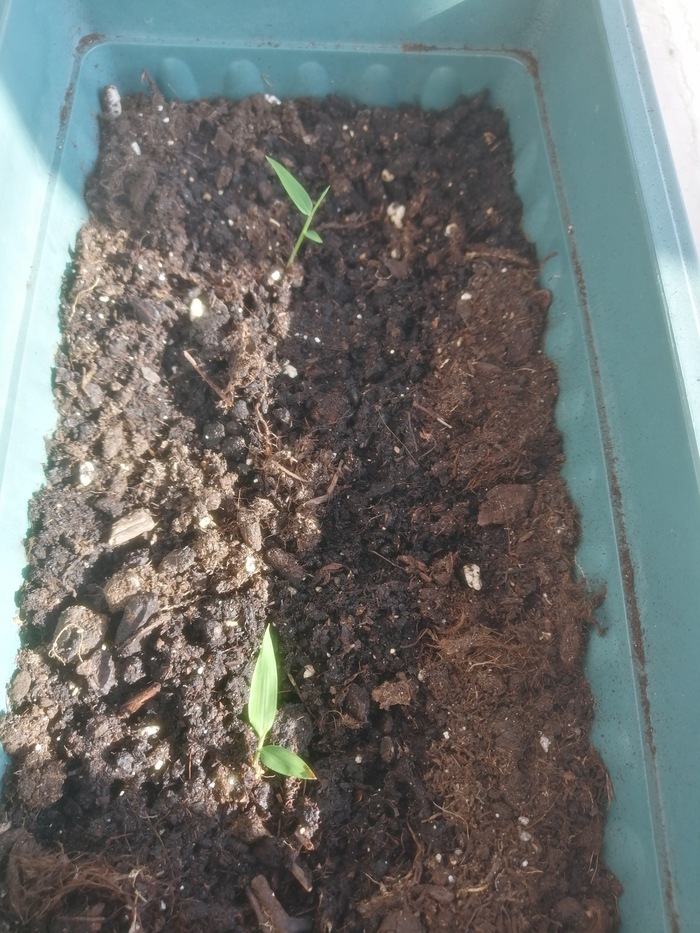 А вот и мои росточки бамбука. Из 20 пробилось всего 2. Но для наших широт вполне себе неплохой результат, не далее как 20 мая у нас снег ещё шёл...