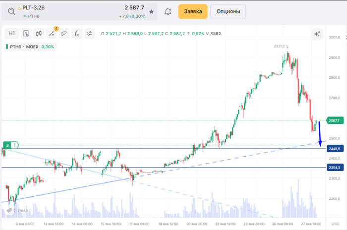 Цена не доходит до уровня 5-10 пунктов и отбивается. При последующем подходе к уровню цена отстоит от него уже дальше, чем при первом.