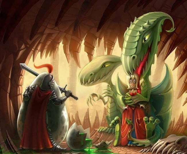 -Чу, я слышу пушек гром!! Блять, сорри, это не с этой оперы! Чудище поганое!!! Пошто на Принцессу напало, молчать, я тебя спрашиваю!! Изыди, исчадие Ада, прочь обратно в Царство Тьмы!!,- прокричал Рыцарь и кинулся на Дракона.