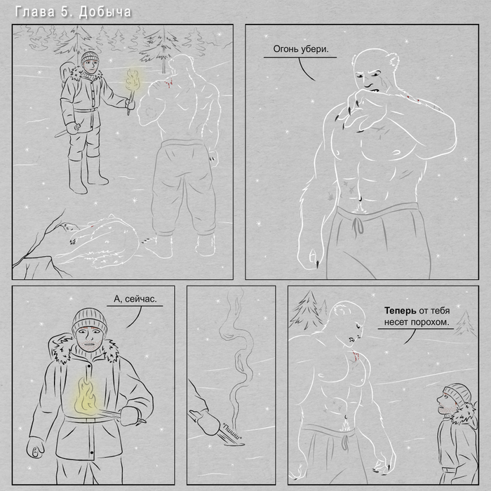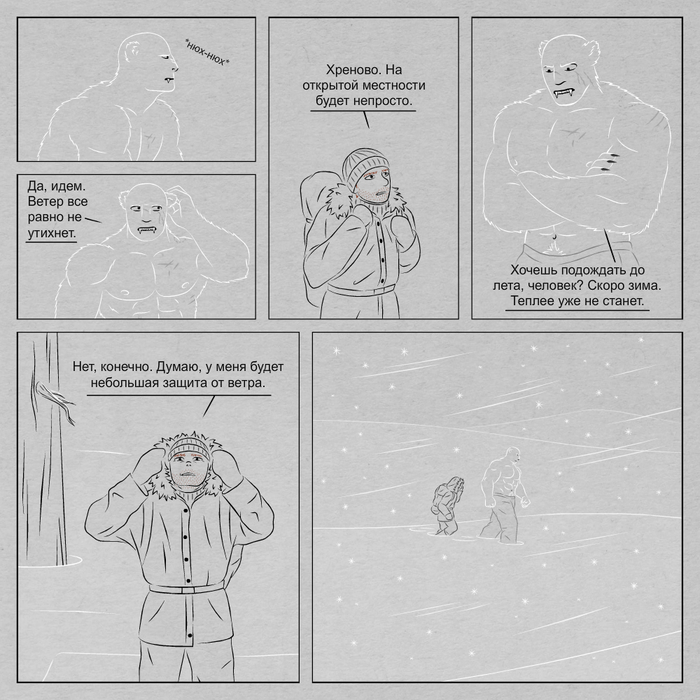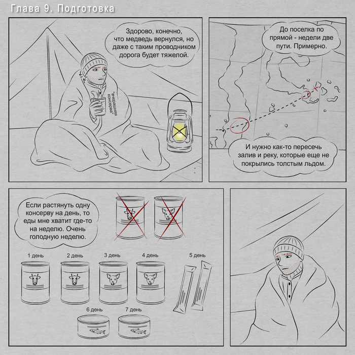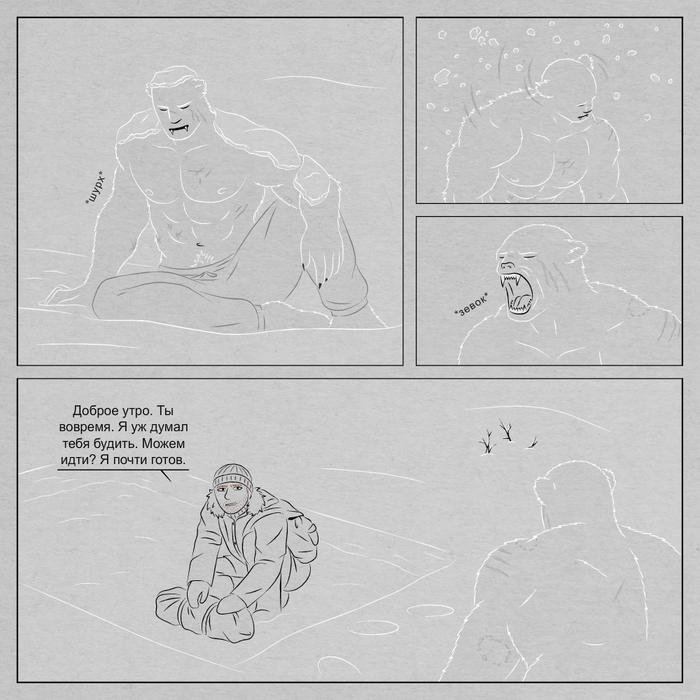 Внесюжетная глава небольшого авторского комикса, вдохновленная документалками про песцов и медведей.