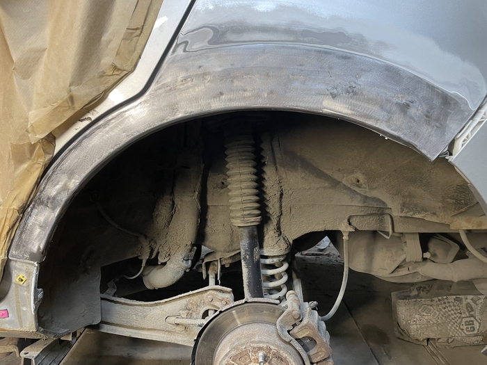 На фото ниже - китайский автомогильчик, на котором из листа железа пришлось изготавливать наружные и внутренние арки, а затем соответственно окрашивать.