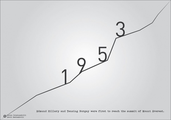 Первое в мире покорение Эвереста Эдмундом Хиллари и Тенцингом Норгейем.