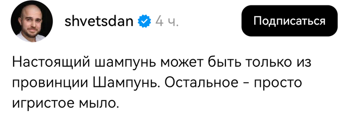 9 supasheff Юмор А настоящий коньяк - может быть только из коня 1 день назад Показать полностью 2 Скриншот Комментарии Юмор Шампунь Шампанское Threads 1 Ещё 0