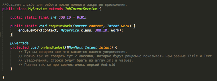 Что бы все работало на всех версиях Android(так как начиная с версии 8.0 были ужесточены разрешения на работу в фоне) будем делать следующее: