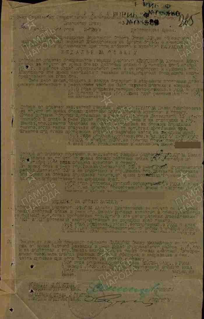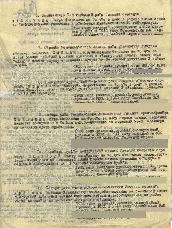 Она бесстрашно оказывала помощь раненым бойцам на передовой, под пулями вытаскивала раненых с линии фронта, в одном из боёв она вытащила из подбитого танка контуженого бойца, Суровенного Григория Ивановича, своего будущего мужа. Про войну рассказывать не любила ни она ни дед. Лишь скупые буквы наградных листов свидетельствуют о том, какими героями они были.