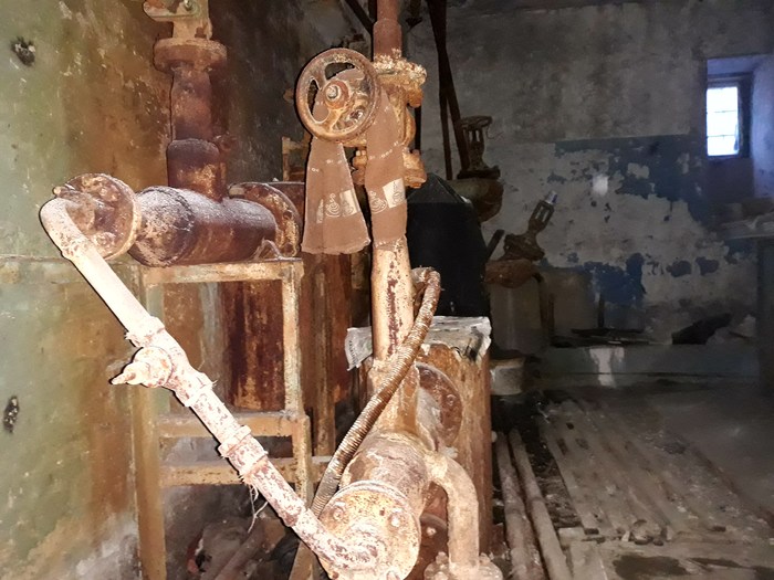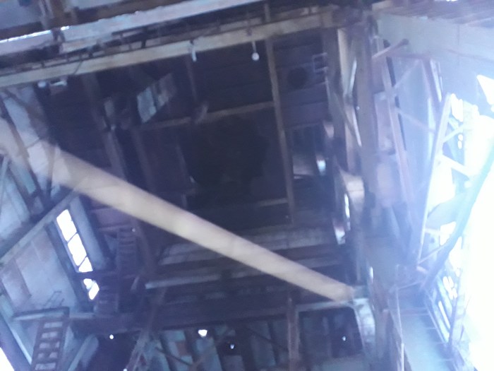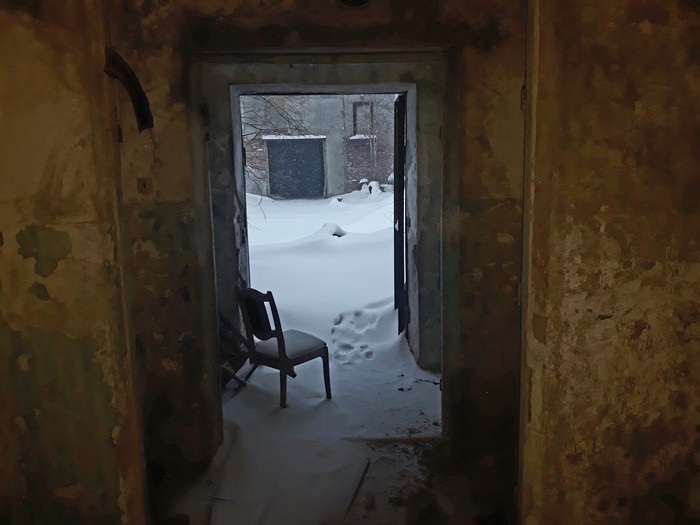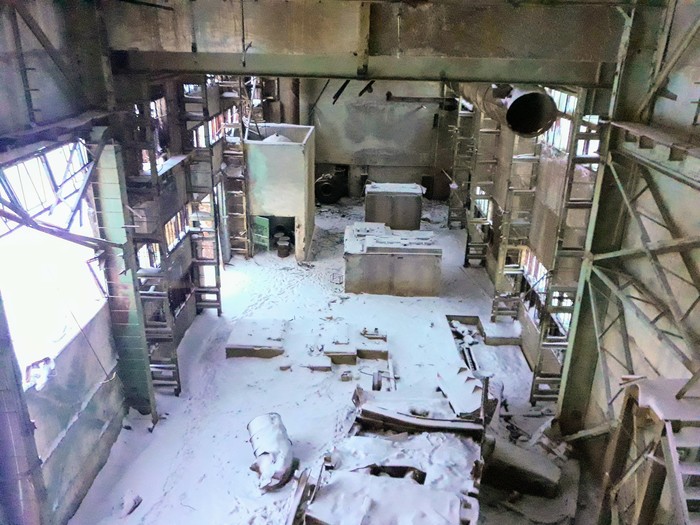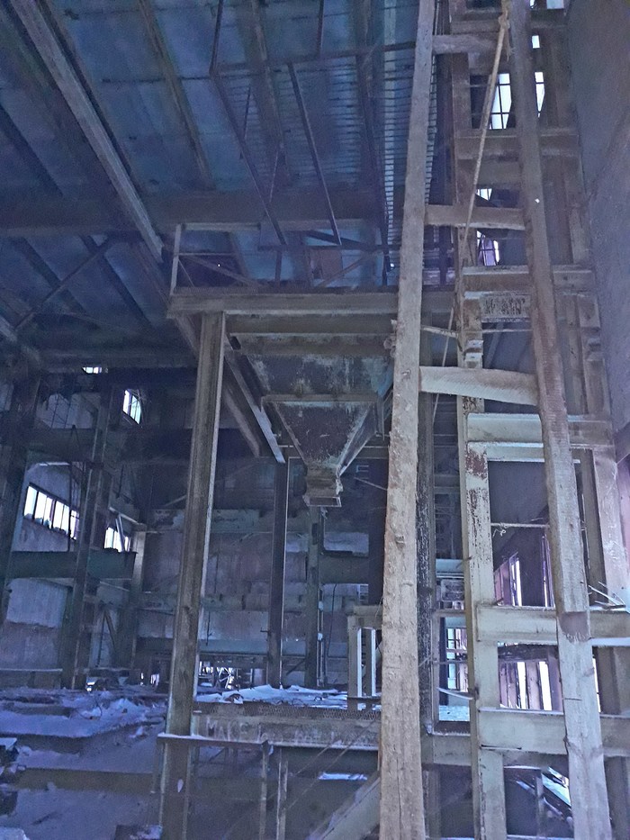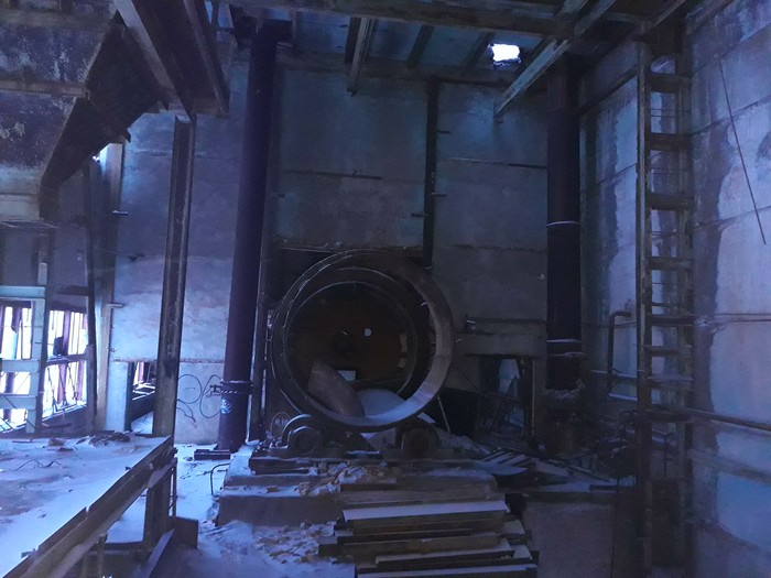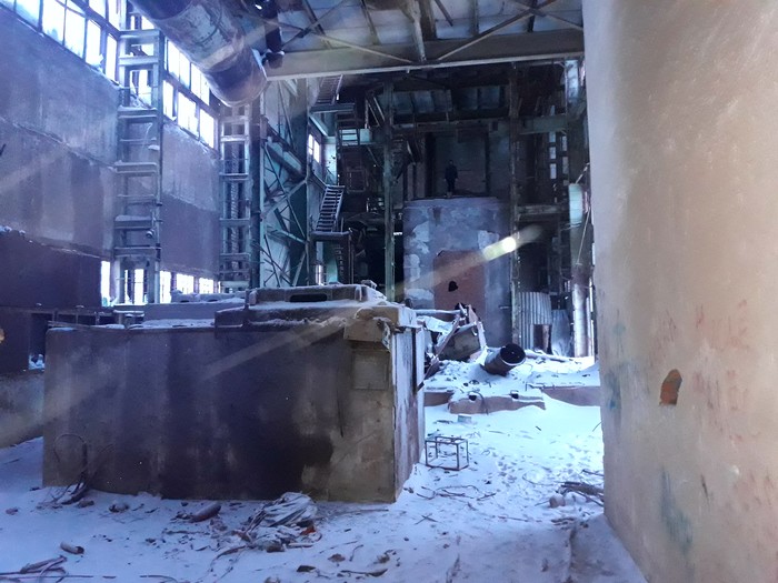 Здание, которое является частью комплекса когда-то грандиозного градообразующего предприятия, сейчас (если верить трафаретам на стенах) принадлежит частному лицу. И выглядит вот так: