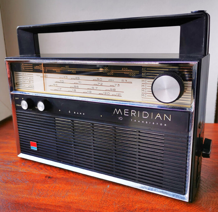 Меня заинтересовала радиоаппаратура в кадре, предлагаю разобрать что, где и почем. На серванте стоит радиоприемник "Меридиан", он выпускался с 1967 года в Киеве на заводе "Радиоприбор", стоимость радиоприемника 85 рублей. У меня в коллекции есть аналогичный радиоприемник, есть два отличия: он в экспортном оформлении - у него надписи на английском языке, ну и цвет корпуса полностью черный.