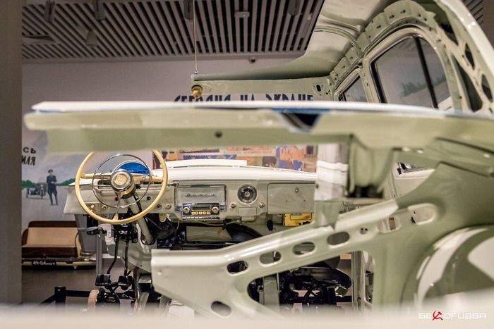 Заказчик желает в скором времени доработать стенд установкой фрагментов сидений, других частей салона. Да с радостью! На сегодня получилась отличная инсталляция, которая очень нравится взрослым и детям, профессионалам и любителям. И не любителям, надеюсь, она тоже понравится. Очень важно наблюдать стенд вблизи – можно долго рассматривать открытые части машины, их очень много. Считаем, что выжали из Волги максимум. Теперь наш заказчик - Хранитель истории, имеет возможность не только показывать технику снаружи, но изнутри.