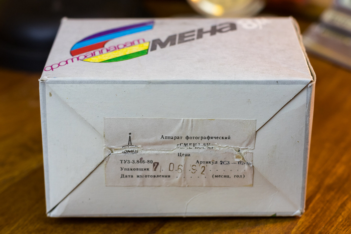 Формально фотоаппарат произведен уже не в СССР, так как на нижней этикетке стоит дата выпуска 7 июня 1992 года.