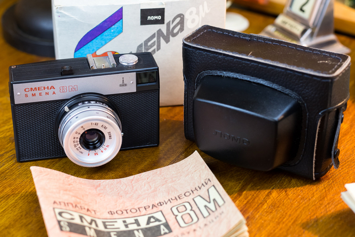 "Смена-8М" - шкальный фотоаппарат, который выпускался на Ленинградском оптико-механическом объединении с 1970 по 1990-е годы. Фотоаппарат имеет несменный просветленный объектив "Триплет Т-43", с фокусным расстоянием 40 мм и минимальным значением диафрагмы 4.
