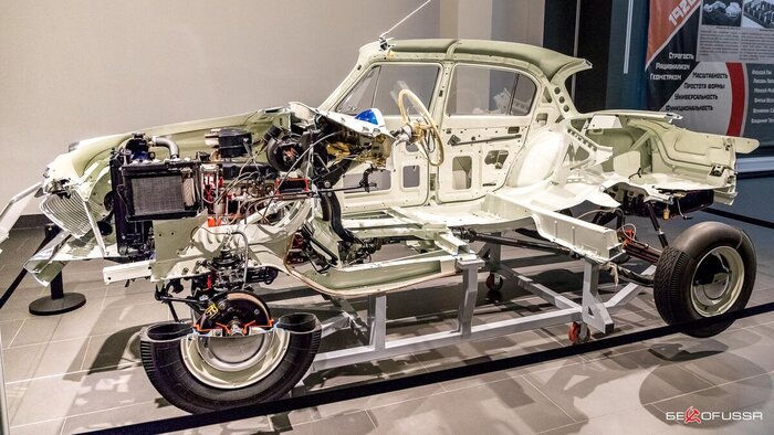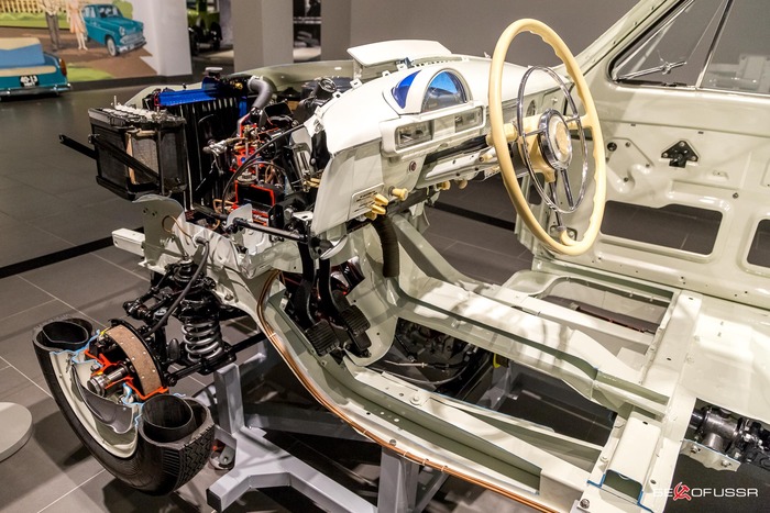 На третьем этаже отечественные автомобили 70-90-х годов. Помимо автомобилей множество оригинальных инсталляций, мультимедийных стендов и так далее. В отдельном зале представлены автомобили и мотоциклы специальных служб. (листайте галерею)