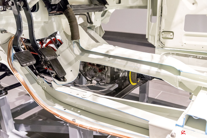 Это не совсем обычно для нас. Для того, чтобы показать в разрезе ДВС и КПП нужно делать основной "дисплей" в месте их соединения и система смазки должна быть главной отправной точкой. Здесь же - моторный щит и торпедо почти всё закрывают.