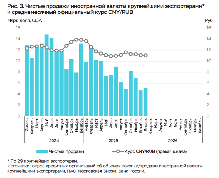 Спрос в 26254 составил 289 млрд ₽, выручка — 247 млрд ₽ (средневзвешенная цена — 92,52%, доходность — 14,73%). Спрос в 26245 составил 118,3 млрд ₽, выручка — 67,1 млрд ₽ (средневзвешенная цена — 88,43%, доходность — 14,75%). Минфин заработал за этот аукцион 365,3₽ млрд (в прошлый — 99₽ млрд). Министерство планирует разместить ОФЗ в I кв. 2026 г. на 1,2₽ трлн (разместили 756 млрд ₽, осталось 5 недель). Недавно Минфин зарегистрировал 6 доп.выпусков (ОФЗ-ПД) на сумму 2,5 трлн ₽, которые доступны с 11 февраля, с учётом снижения ставки и смягчения ДКП, то спрос будет повышенный.