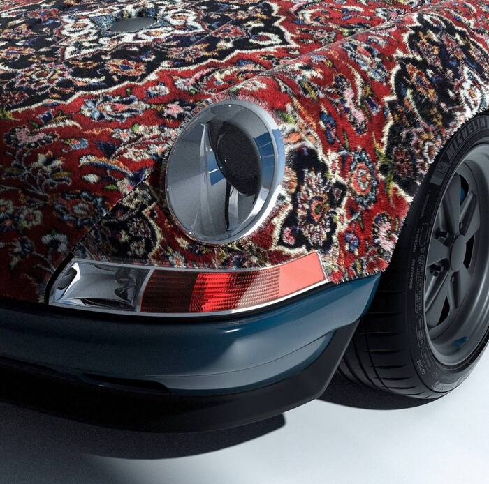 А если серьезно, это работа Иранского художника Али Хосейни. Более года назад Али разместил у себя на странице 3D работу с традиционным Иранским ковром на капоте автомобиля. Картинки завирусились сначала в Иране, а потом разлетелись по всему свету. И вот недавно компания Porsche, получив разрешение от автора, разместила его работу у себя на страницах в соцсетях.