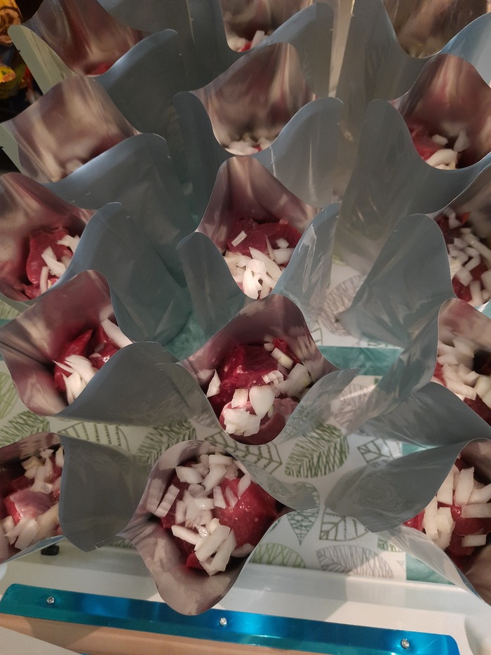 Запаиваем каждый пакет швом 8 мм и складываем в автоклав. Готовим нагревом на воде 120 градусов 40 минут.