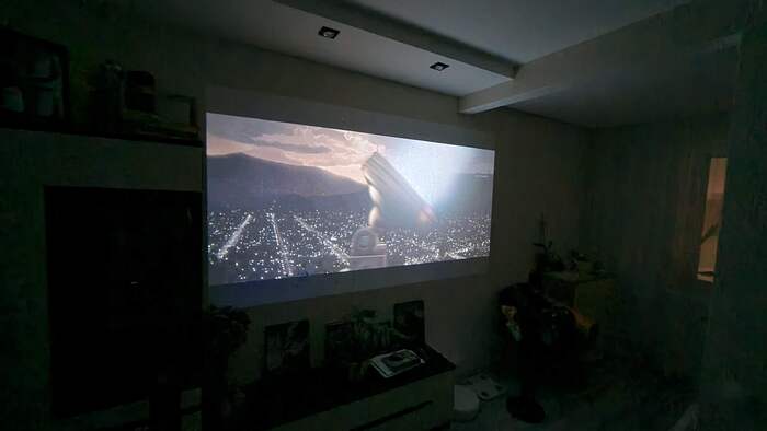 Нужно иметь в виду то, что для лучшего изображения нужна полная темнота в помещении, т.е. днем смотреть можно, но нужны либо блекаут роль-шторы или что то подобное. Когда я покупал проектор, я уже все это понимал и для моего режима просмотра (на выходных вечером) меня это устраивало.