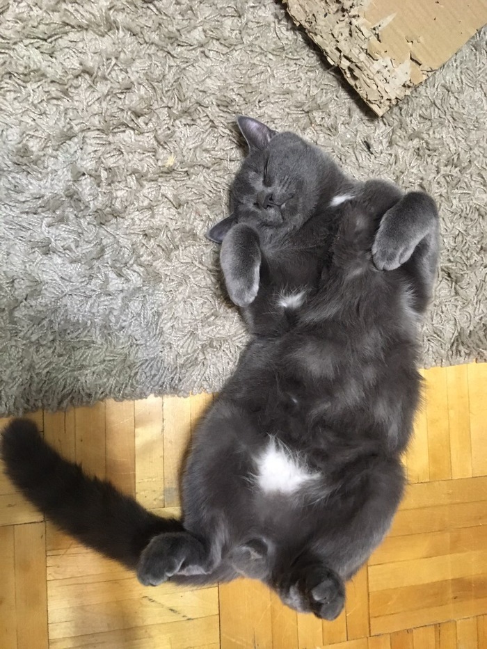 У всех котов особая любовь к коробкам. У моего кота также. Но больше, чем коробку, он любит спать пузом вверх. Хотя нет, больше всего он любит инсталляции в жанре «хрупкое равновесие»