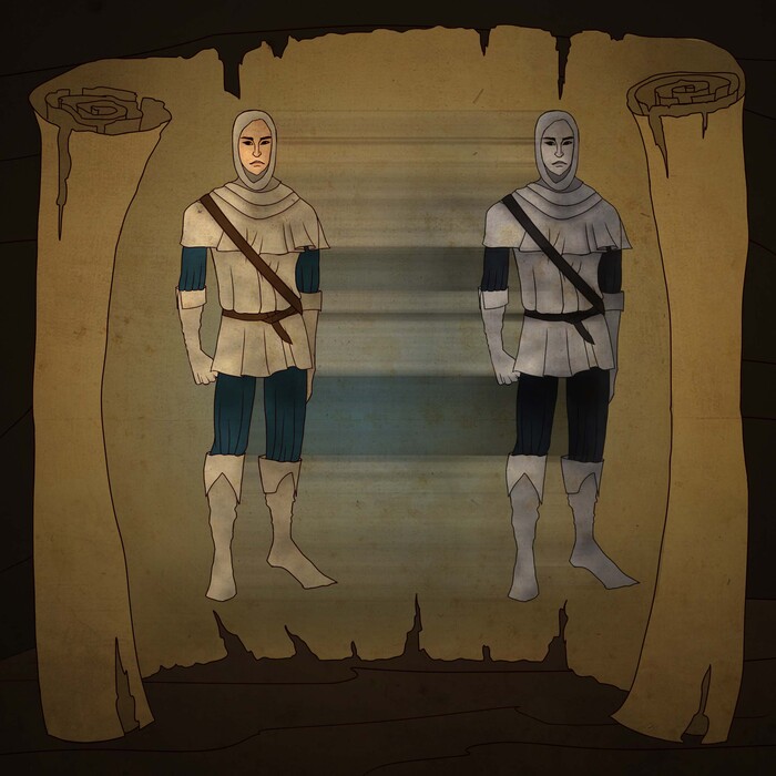 Гонелла приводит пример вооруженных стражей, охранявших вход в царство Осириса в гробнице царицы Нефертари, трех казненных стражей-левитов из Иерусалима, упоминаемых в книге Иеремии и ссылается на Майтри Упанишады, в которых сказано, что попасть в зал Брахмы можно только убив Стража Врат. Из этого Гонелла делает вывод, что фигура стража (в нашем случае, мастера) противостоит фигуре путника - любого адепта, жаждущего знания, стоящего перед престолом мастера.