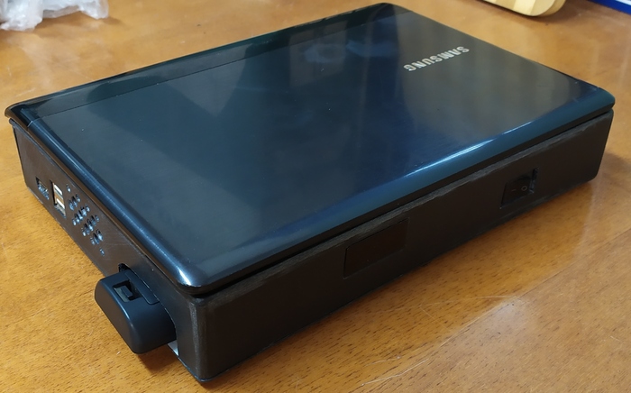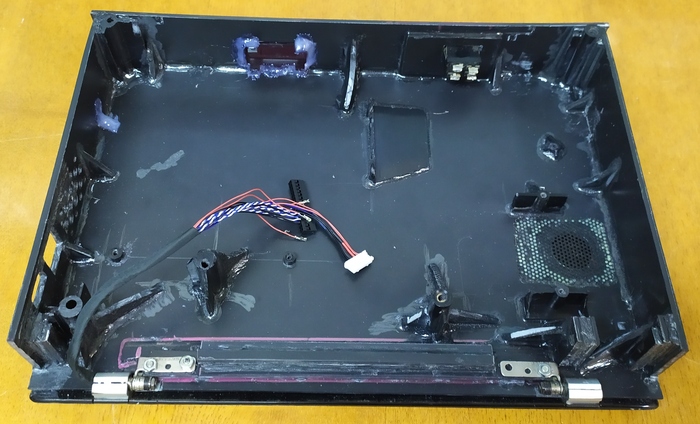 1. Дохлый нетбук Samsung NP305U1A с матрицей 11,6 дюйма B116XW02 v0, 1366x768, LVDS, 1ch, 6bit, 3,3V, 40 Pin. От нетбука использовал саму матрицу вместе с рамкой и родными петлями.
