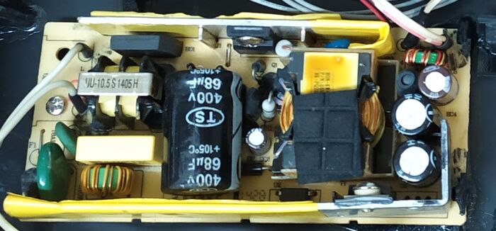4. 12 вольтовый блок питания. Тоже с али, но не в виде нового изделия, а в виде б/у платы из брендовых блоков с разбора. Отдельно сфоткать не догадался, поэтому вот в таком шакалистом виде.