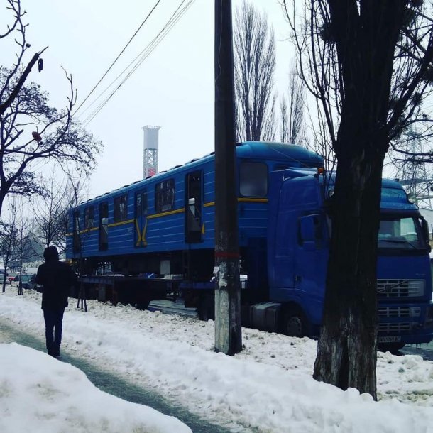 "Для погрузки и перевозки вагонов была задействована спецтехника — грузовики и кран, ведь длина вагона 28 метров, а вес — 30 тонн", — советник начальника КП "Киевский метрополитен" (источник kiev.segodnya.ua)