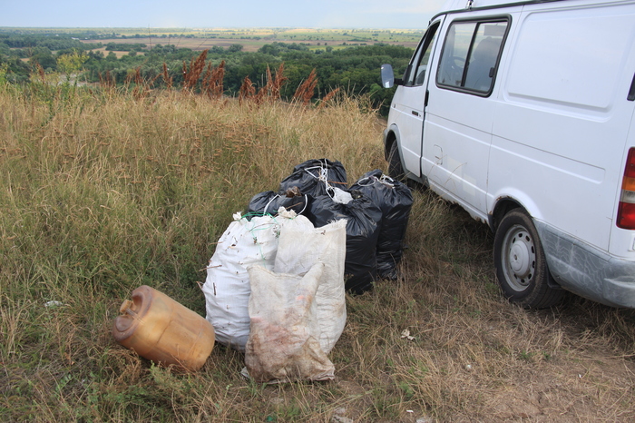 Шесть мешков по девяносто литров, плюс то что там лежало уже "упакованное" и всякий крупняк, многое утилизировалось прямо там, много мусора с огородов который приходилось перекидывать в мешки лопатой. И всё равно это не дало ощутимого результата! Ну, хоть что-то.