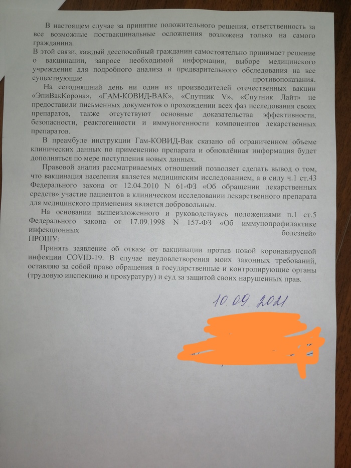 Как мне думается, из всего разнообразия законов она выбрала те, что удобны ей, как яростной анитипрививке. Что мне делать, уважаемая лига!? Посадят меня или нет?) Департамент требует 60 процентов прививашек от числа сотрудников, отказников грозятся начать отстранять от работы после 19 числа. В общем капец...
